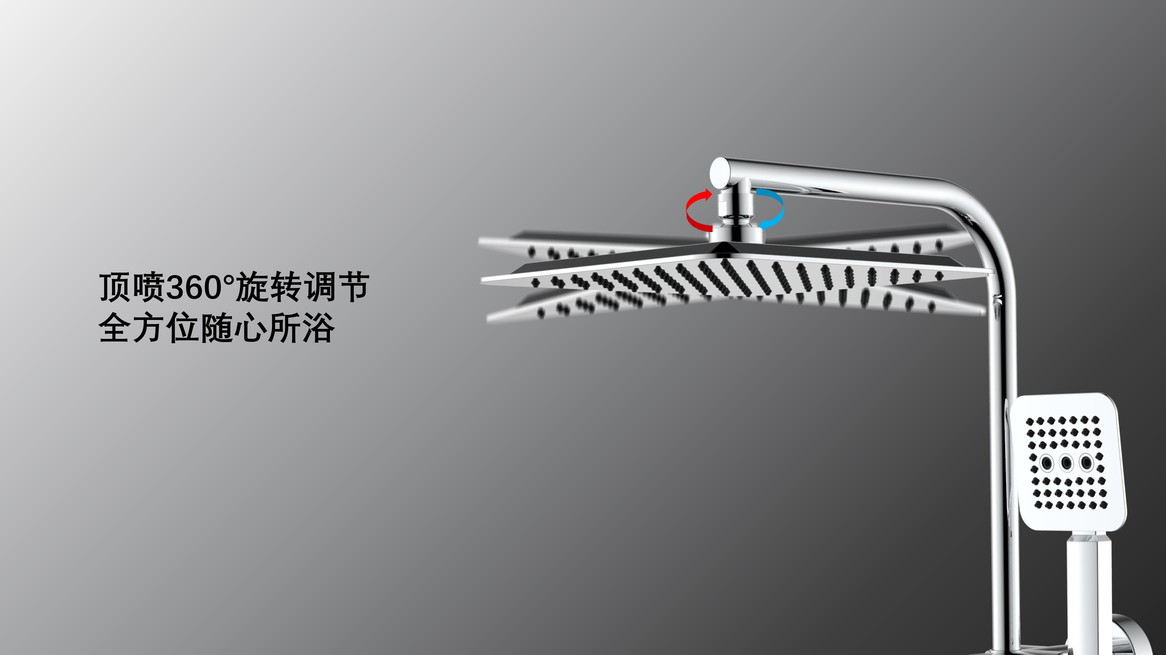 方形寬大頂噴;Z字形三通;按壓切換頂噴/花灑出水